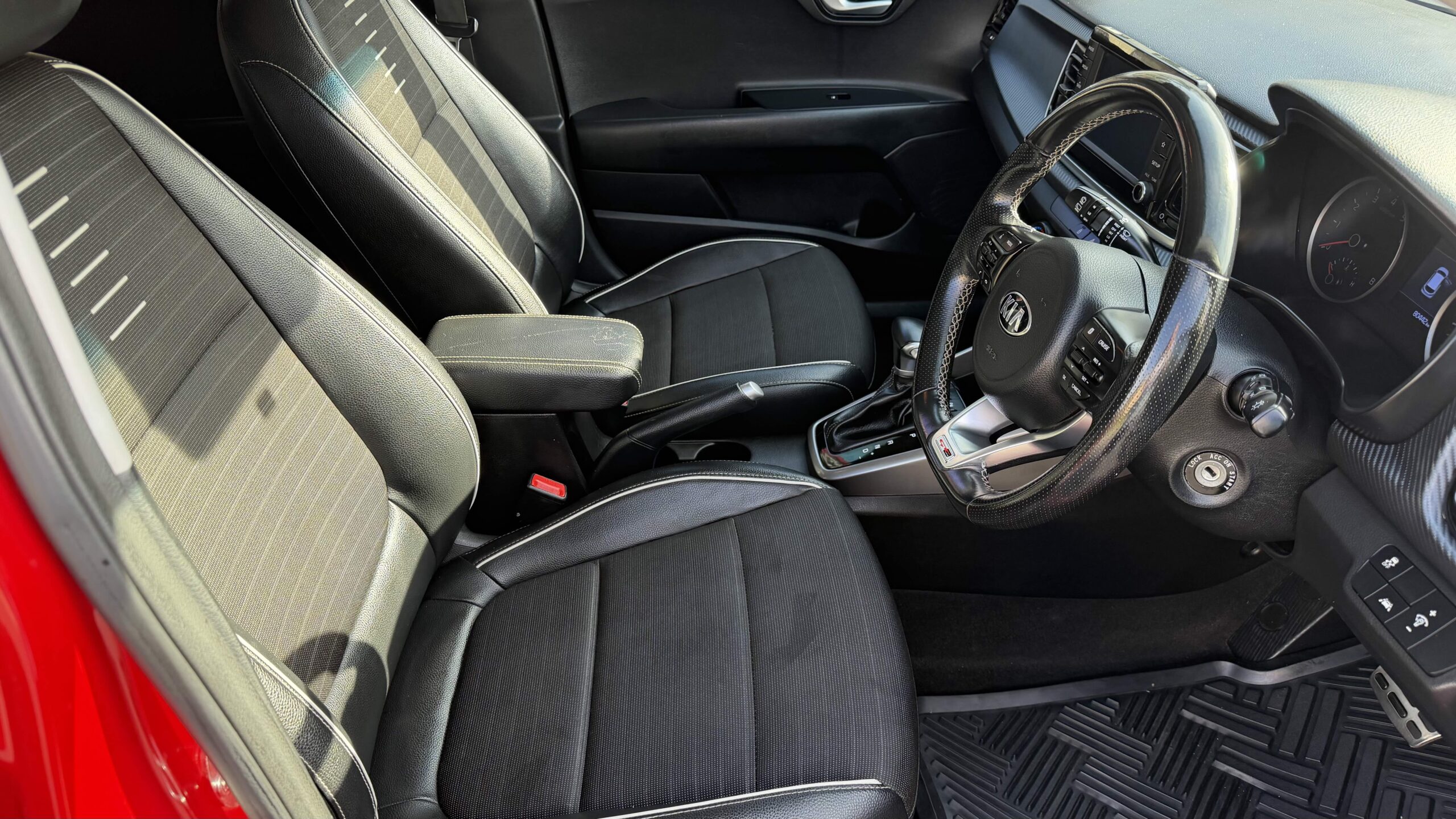 2020 Kia Rio GT-Line Hatch, Red in Colour, 1.0L Turbo 4CYL, 7 Speed Dual Clutch Automatic, Digital Icy Cold Air Condition, Power Windows, Remote Central Locking (2 X Keys), Power Mirrors Folding, Cruise Control, Black Leather, Touch Screen Stereo, AUX & USB, Bluetooth Phone Connection, Apple Car Play & Android Auto, Trip Computer, Lane Departure, Front & Rear Collision Avoidance, Driver & Passenger & Side AirBags, Tinted Windows, Reverse Parking Sensors, Reverse Camera, Daytime Running Lights LED, ABS, EBD, 17″ Alloy Wheels with Near New Tyres, Warning Rear Cross Traffic when Reversing, So Many Options to list, Registered until 27/02/2026, 80000Kms Log Books with Service History, Still Under New Car Warranty until February 2027, One Owner, Excellent Condition, Suits First Car Buyers.